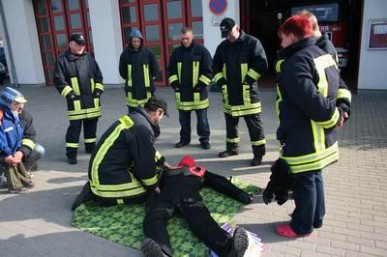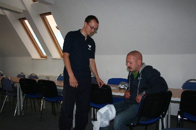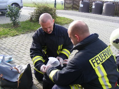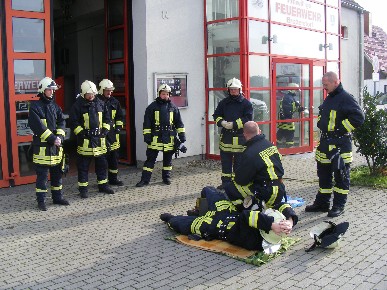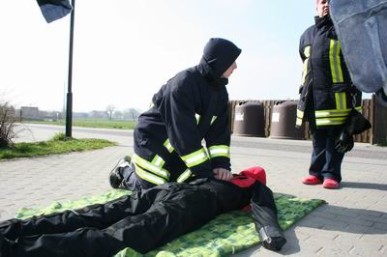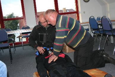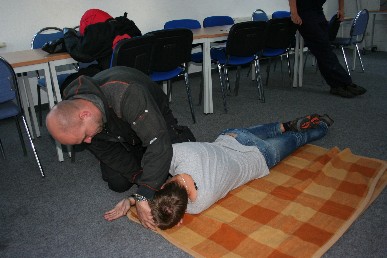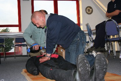 Und so sieht das ganze dann bei uns aus:Herzdruckmassage und Beatmen